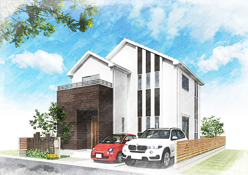 外観パースを水彩風に。また手書きも対応します。