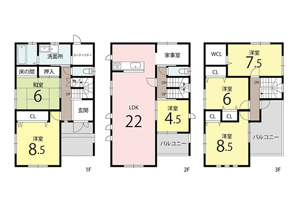 1階間取と2階間取と3階間取のみで1200円〜