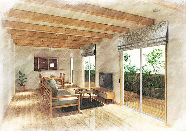 内観パースを水彩風に加工します。また、手書きにも対応しています。